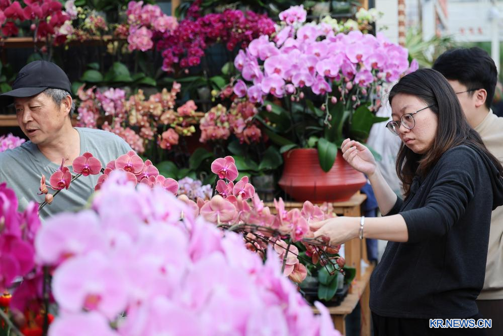 1일 톈진(天津)시 시칭(西青)구의 차오좡(曹庄) 화훼시장에서 꽃을 고르는 시민.