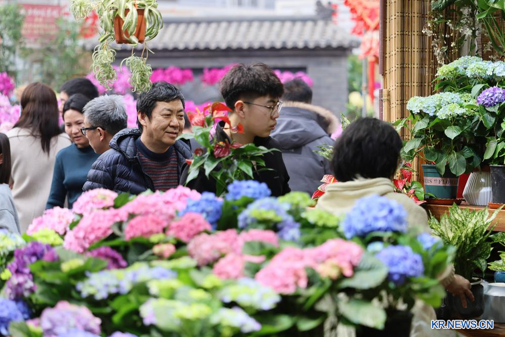 [신화망 톈진 2월4일] 춘절(春節·음력설)을 맞아 톈진(天津)시 시칭(西青)구에 위치한 차오좡(曹庄) 화훼시장의 만개한 꽃들이 시민의 발걸음을 사로잡고 있다. 중국 화북지역의 최대 화훼 집산지 중 하나인 차오좡 화훼시장에선 일평균 1만 본의 화훼가 판매되고 있는 것으로 전해졌다.