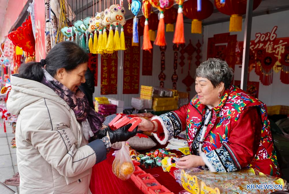 [신화망 구위안 2월5일] 춘절(春節·음력설)이 다가오면서 닝샤(寧夏)회족자치구 구위안(固原)시 시지(西吉)현에 위치한 시지박물관 광장에서 춘절맞이 용품 장터가 열렸다. 미식 맛보기, 전통공연 관람, 춘절맞이 용품 구매를 위해 이곳을 찾는 사람이 늘면서 명절 분위기가 무르익고 있다.