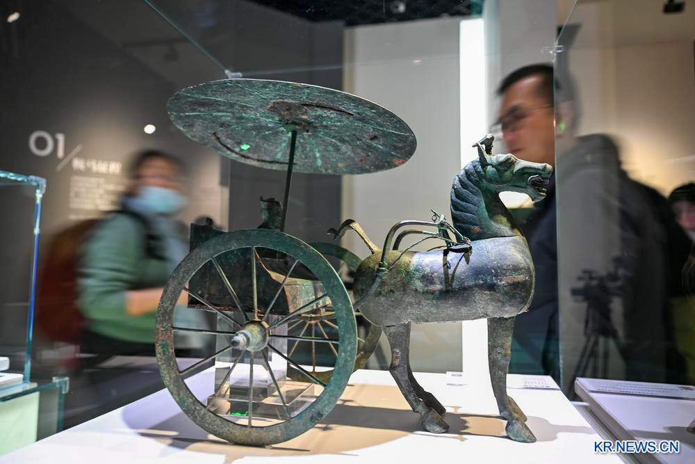 말을 주제로 한 전시회가 4일 상하이박물관 인민광장관에서 열렸다. 간쑤(甘肅)성박물관, 간쑤성문물고고연구소, 셴양(咸陽)박물원, 상하이박물관 소장품 중 말 관련 문물 16점(세트)이 전시됐다.