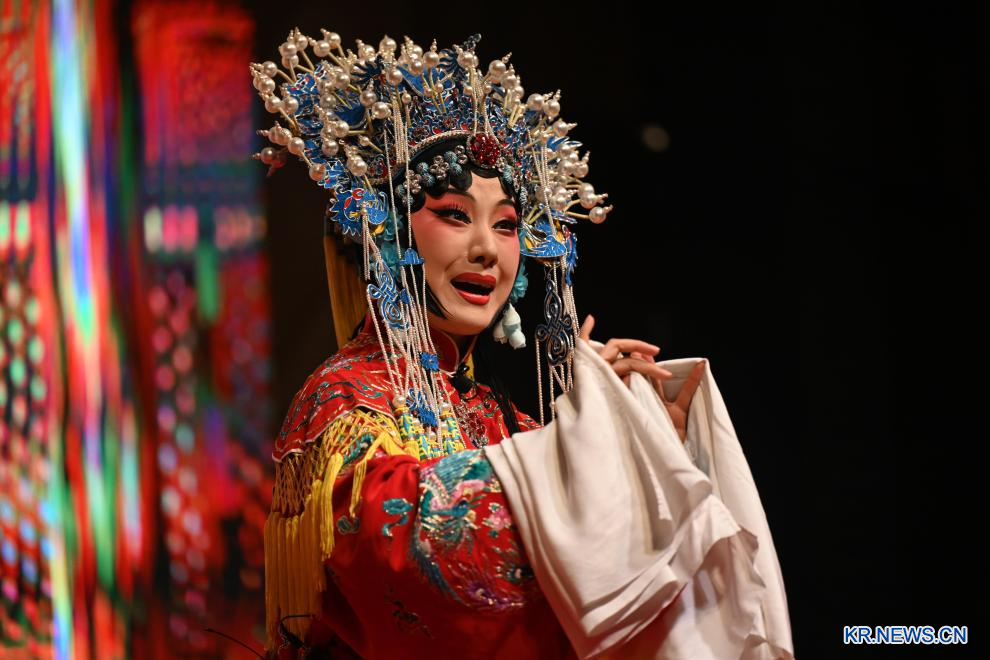 쿠웨이트 알파르와니야주에서 열린 '즐거운 춘절' 문화 행사에서 한 배우가 중국 산시(陝西) 지방 전통극 친창(秦腔)을 공연하고 있다. 2026.2.3pagebreak