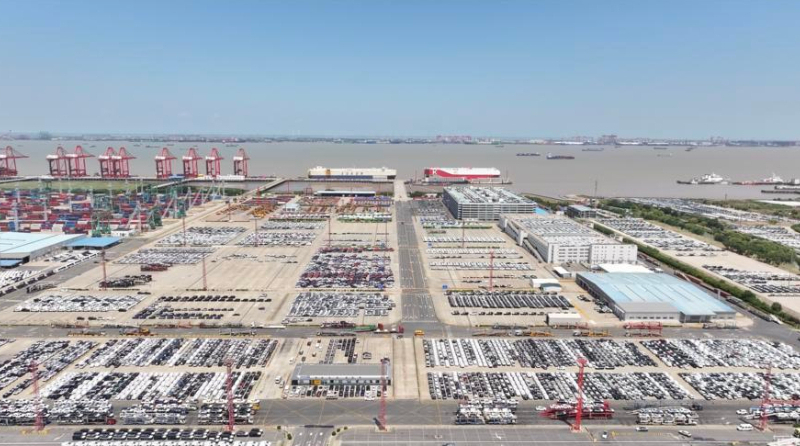 [신화망 중국 상하이 2월 6일] 상하이 와이가오차오(外高橋)의 하이퉁(海通) 자동차 로로부두(이하 하이퉁 부두). 밍줴(名爵·MG), 창안(長安), 치루이(奇瑞·Chery) 등 차량들이 자동차 로로선에 실리고 있다. 해당 로로선은 약 1천 대의 중국 자동차를 싣고 에콰도르 만타항으로 떠날 예정이다.