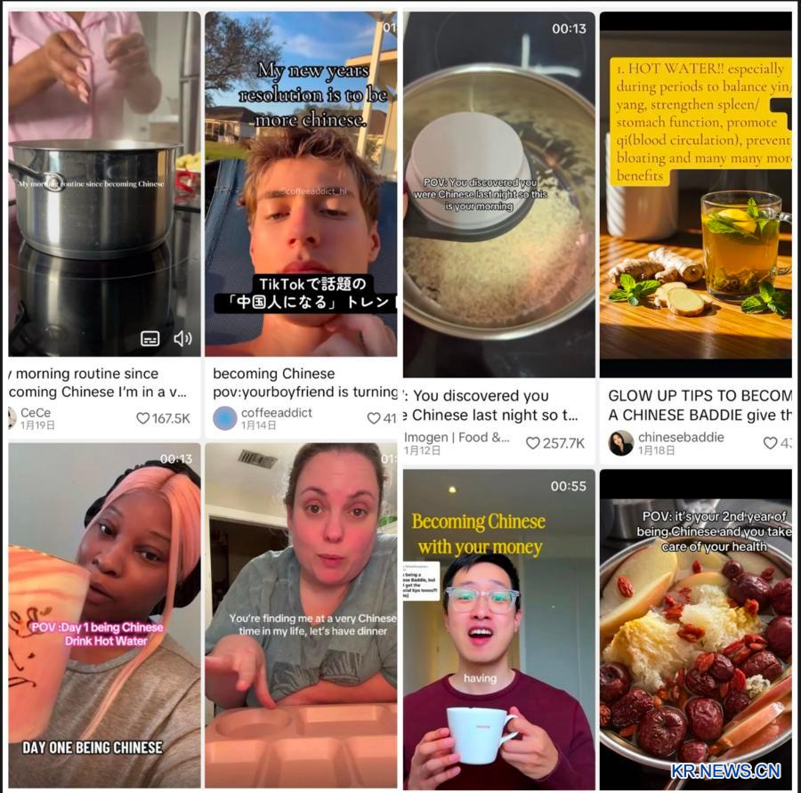 [신화망 서울 2월6일] 중국식 라이프스타일을 직접 체험하고 있는 한국 젊은이들이 적지 않다. 차가운 물 대신 미지근한 물 마시기, 아침 샐러드보다 따뜻한 죽 먹기, 팔단금(八段錦·건강 증진을 위한 중국 고유의 체조법) 같은 체조 따라 하기...이러한 '비커밍 차이니즈' 붐 현상은 최근 틱톡 등 소셜미디어(SNS)를 통해 한국 사회 곳곳에 생동감 있게 번졌다.