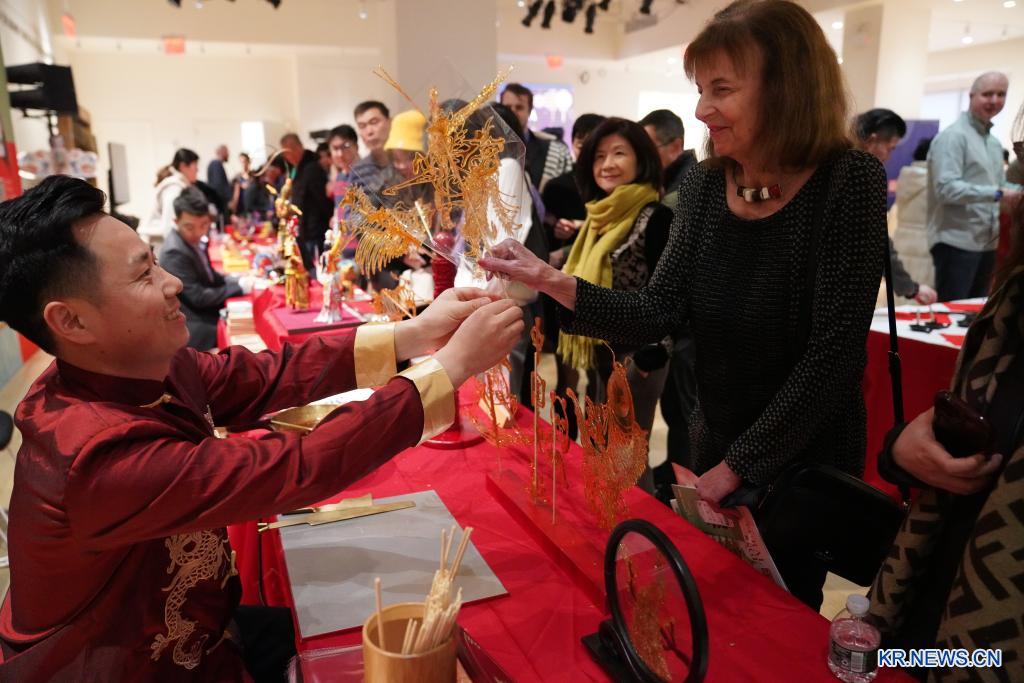 ‘중국의 맛’을 테마로 한 춘절(春節∙음력설) 문화행사가 8일(현지시간) 미국 뉴욕에서 개막했다. 중국 음력설을 앞두고 열린 행사장을 찾은 400여 명의 중국 및 외국 손님들이 중국 음식을 맛보고 무형문화유산 작품을 구경하며 즐거운 시간을 보냈다. 테마 행사 ‘중국의 맛’은 샌프란시스코, 포틀랜드 등 북미 도시에서도 열릴 예정이다.[촬영/신화통신 기자 장펑궈(張鳳國)]