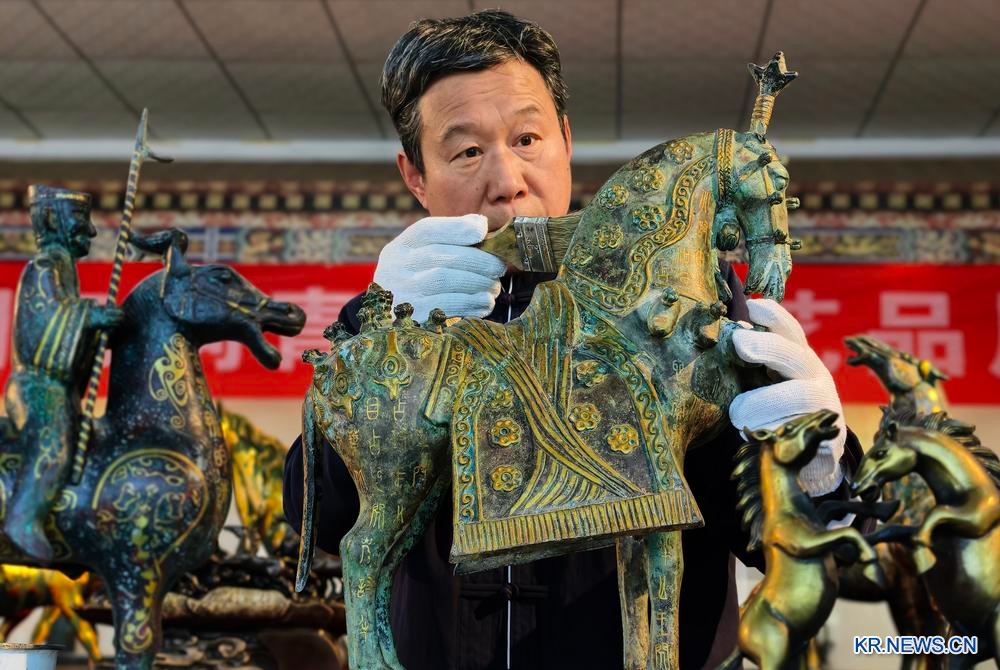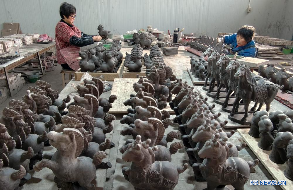 [신화망 중국 뤄양 2월 11일] 말의 해를 맞아 허난(河南)성 뤄양(洛陽)시에서 당삼채(唐三彩) 소성 기법과 청동기 제작 기술을 기반으로 말을 테마로 한 다양한 제품을 생산하고 있다. 이를 통해 전통문화 계승과 주민 소득 증대에 일조하고 있다.