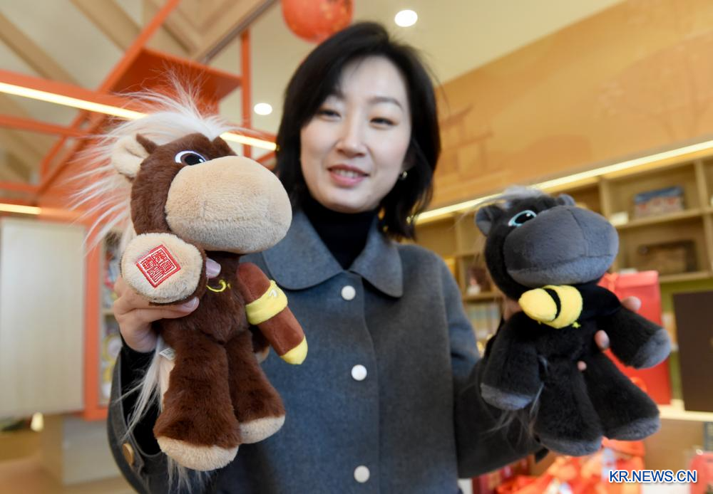 7일 직원이 원명원(圓明園) 문화창의 전시관에서 말 모양의 상품을 소개하고 있다.