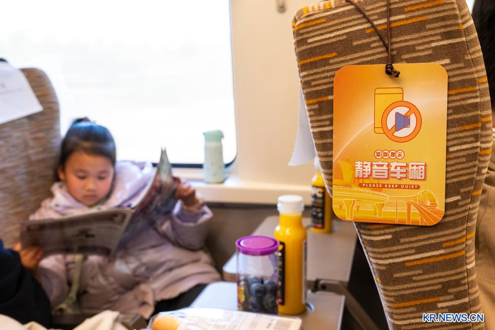 [신화망 중국 우한 2월14일] 올해 춘윈(春運·춘절 특별수송) 기간 중국 전역에서 8천 편 이상의 고속열차가 '조용한 객실'을 운영하며 승객들에게 세심한 서비스를 제공하고 있다.
