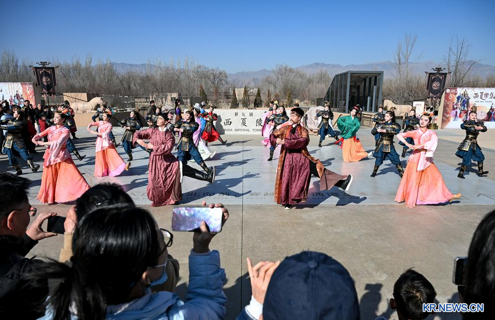 [신화망 중국 인촨 2월15일] '서하악집(西夏樂集)' 몰입형 공연예술 행사가 13일 닝샤(寧夏)회족자치구 인촨(銀川)시에 위치한 서하릉(西夏陵)관광지에서 정식 개막했다. 세계유산으로 선정된 서하릉관광지는 '문화관광+공연예술' 중심의 새로운 관광소비 시나리오를 구축해 관광객에게 고대와 현대를 넘나드는 독특한 체험을 선사하고 있다.