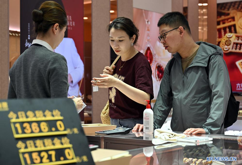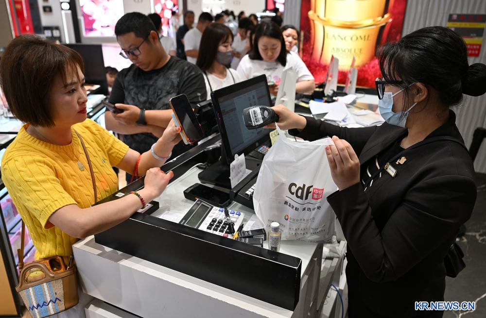 16일 하이커우(海口) 르웨(日月)광장 면세점에서 제품을 살펴보는 고객.
