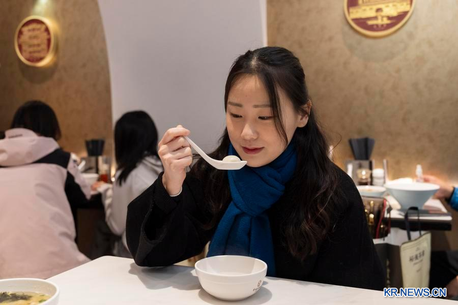 "한국은 음력설에 떡국을 먹는데 중국에선 화합의 의미로 탕위안을 먹죠. 맛이 달콤하고 한 입 베어 무니 흑임자 소가 흘러나오네요. 김이 모락모락 나는 탕위안을 먹고 나니 온몸이 따뜻해지는 기분이에요."