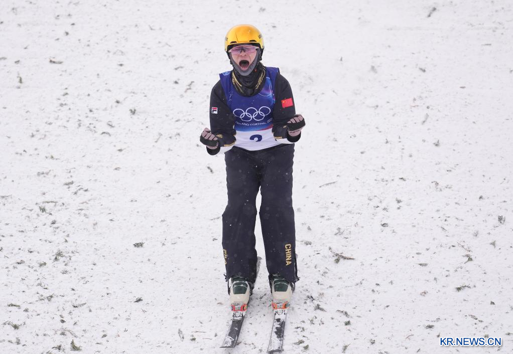 중국의 왕신디(王心迪) 선수와 리톈마(李天馬)선수가 20일(현지시간) 이탈리아 리비뇨에서 열린 밀라노-코르티나 동계 올림픽 프리스타일 스키 남자 에어리얼 결승에서 각각 금메달과 동메달을 목에 걸었다. [촬영/신화통신 기자 우후이워(邬惠我)]