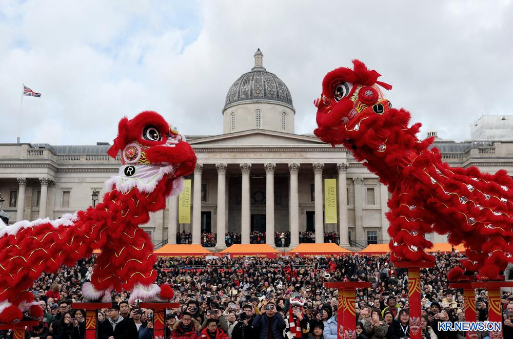 [신화망 런던 2월24일] 중국 춘절(春節·음력설) 전통 축제가 22일 영국 런던 트라팔가 광장에서 열렸다.