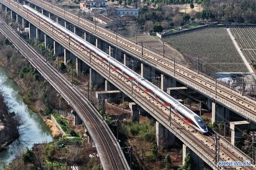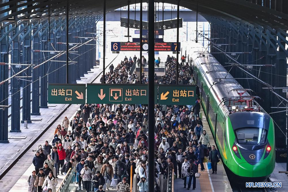 중국 국가철로그룹(중국철로)에 따르면 춘절(春節·음력설) 연휴 마지막 날인 이날 귀경객이 최고조에 달해 약 1천850만 명의 승객을 운송할 것으로 예상되며 열차 2천297편이 추가 운행될 계획이다. 2026.2.23