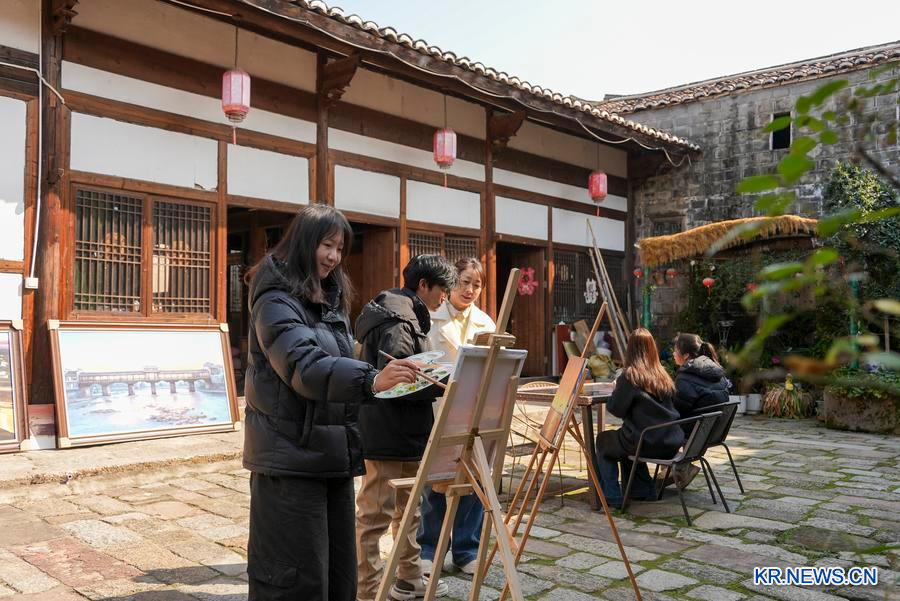 민박 정원에는 무료 유화 그리기 체험에 나선 관광객으로 북적였다. 상하이에서 온 한 관광객은 "예전엔 친지를 방문하며 명절을 보냈는데 올해는 부모님과 아이를 데리고 여행을 왔다"면서 "함께 그림을 완성하는 것이 단순히 관광지를 둘러보는 것보다 더 뜻깊었다"고 말했다.