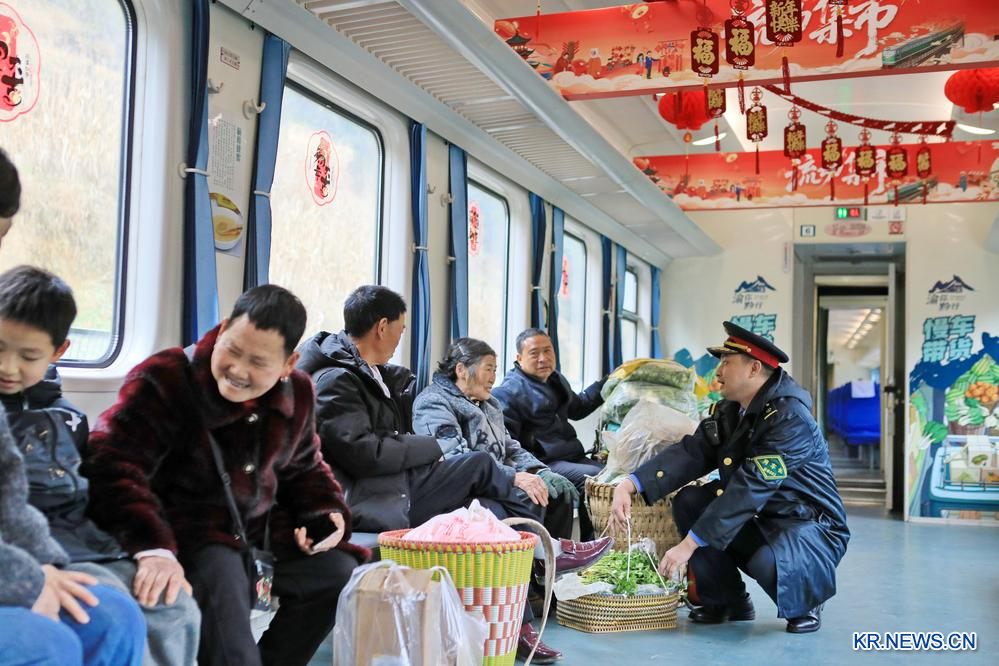 [신화망 중국 쭌이 2월26일] 구이저우(貴州)성 쭌이(遵義)와 충칭(重慶)을 잇는 5629/5630편 열차는 공익 '완행열차'로 33년 동안 노선 주변 주민들에게 편의를 제공해 왔다. 일상적인 이동과 농산물 운송을 편리하게 했을 뿐만 아니라 객차에 농민 전용 구역을 마련해 농부들이 농산품을 놓고 판매할 수 있도록 했다.