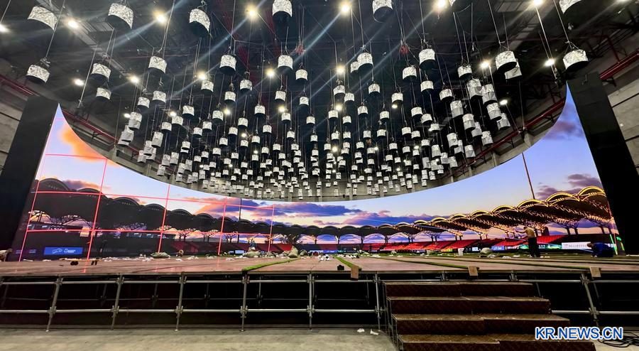 저장(浙江)성 더칭(德清)현에 위치한 AI 가상 영상미디어 기지. 이곳의 세계 최대 단일 구조 LED 가상 스튜디오에서 홍콩 축구를 주제로 한 영화가 제작되고 있다.