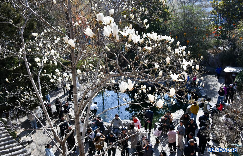 산둥(山東)성 지난(濟南)시의 기온이 오르면서 시내 공원 곳곳에 목련꽃이 활짝 피어올라 많은 시민과 관광객들의 발길이 이어지고 있다.
