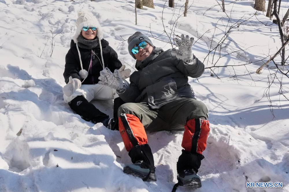26일 톄리시의 숲에서 눈놀이를 즐기는 관광객. 2026.2.26