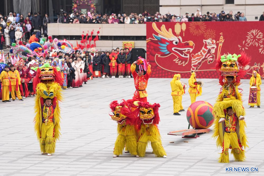 2월 28일 야외에서 펼쳐진 베이징 사자춤 공연.