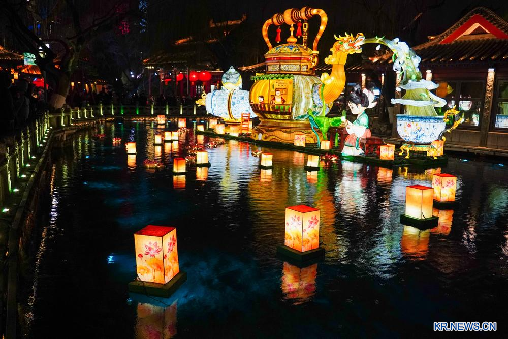 2월 28일 산둥(山東)성 지난(濟南)시 천하제일천(天下第一泉)풍경구에서 등불을 감상하는 사람들.