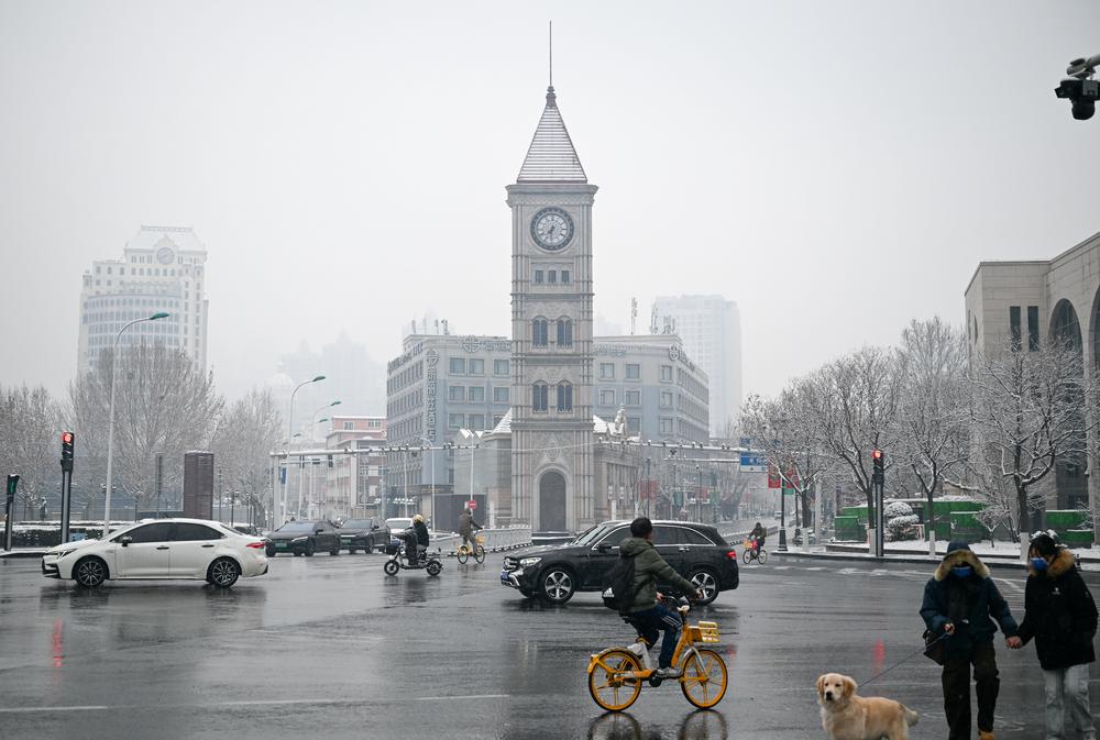 2일 눈 내리는 톈진 시내. 2026.3.2