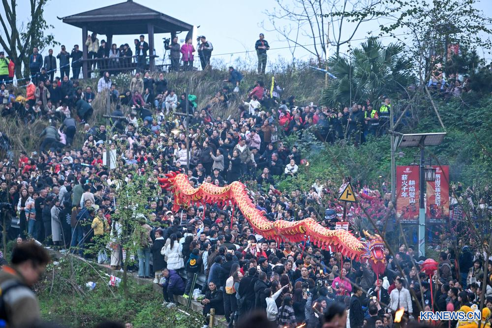 [신화망 중국 충칭 3월4일] '2026년 리산(歷山) 횃불 축제'가 2일 충칭(重慶)시 비산(璧山)구 스야(石埡)촌에서 열렸다. 이번 축제에는 전통 기예 전시∙공연과 색다른 체험 프로그램이 어우러지며 전통 문화의 매력이 농촌 마을 곳곳에 생기를 더했다. 리산 횃불 축제는 매년 정월 14일에 충칭시 비산구에서 개최되는 전통 민속 행사다.