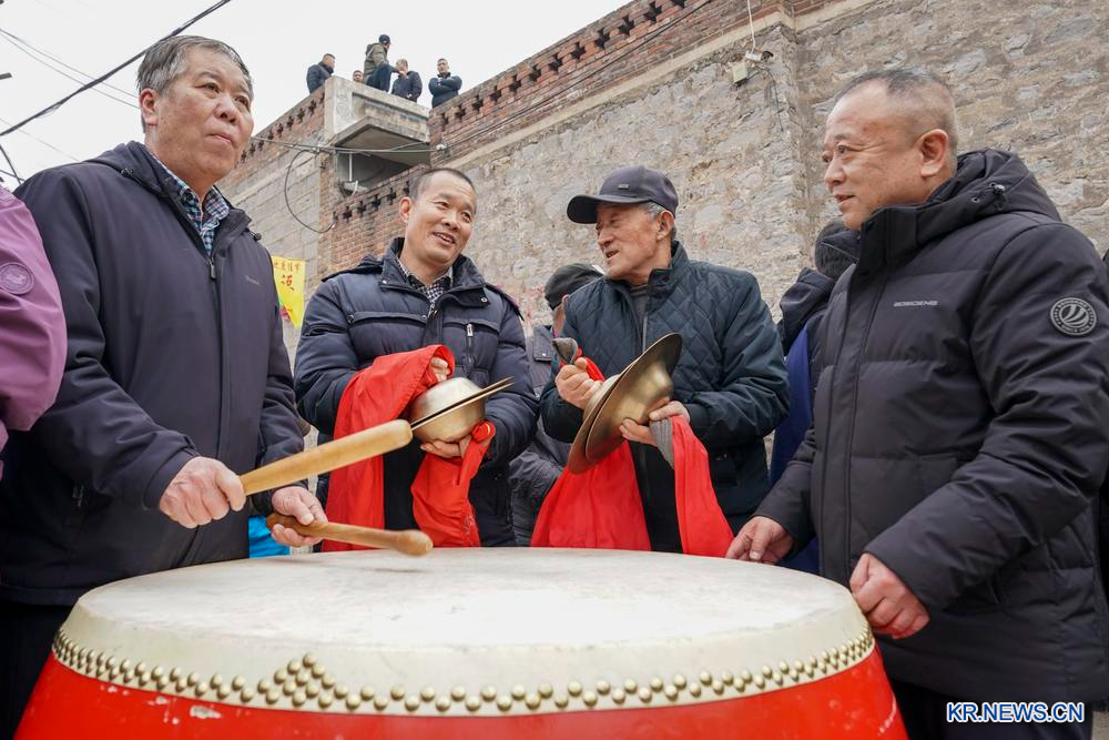 4일 산시(山西)성 양취안(陽泉)시 샤둥자이(下董寨)촌 주민들이 '파오마파이(跑馬排)'를 응원하고 있다.