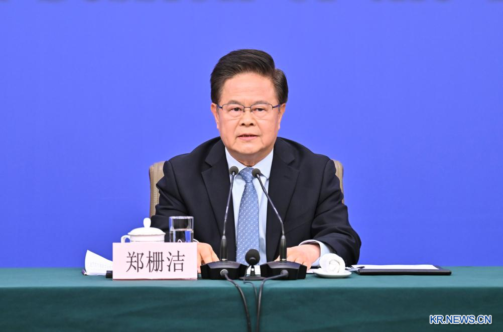 정산제(鄭柵潔) 중국 국가발전개혁위원회 주임, 란포안(藍佛安) 재정부 부장(장관), 왕원타오(王文濤) 상무부 부장, 판궁성(潘功勝) 중국인민은행 행장, 우칭(吳清) 중국증권감독관리위원회 주석은 ▷발전∙개혁 ▷재정∙예산 ▷비즈니스 ▷금융∙증권 등 관련 문제에 대해 중국 국내외 기자의 질문에 답했다.사진은 정산제 주임이 기자의 질문에 대답하고 있는 장면.
