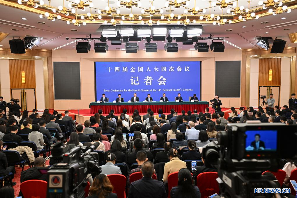제14기 전국인민대표대회(전인대) 제4차 회의 기자회견이 6일 베이징 메이디야(梅地亞)센터 프레스룸에서 열렸다.
