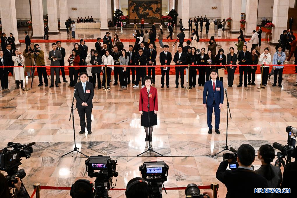 [신화망 베이징 3월7일] 7일 중국인민정치협상회의(정협) 제14기 제4차 회의 두 번째 '위원통로(委員通道)' 집중 취재 활동이 베이징 인민대회당에서 열렸다. pagebreak