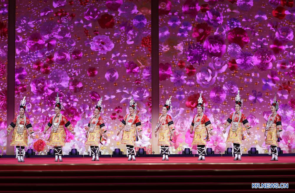 이날 배우들이 행사에서 둥(侗)족 대가(大歌∙둥족 지역의 전통음악 형식) 공연을 선보였다. 2026.3.6