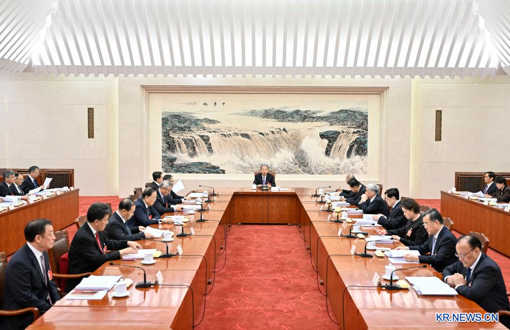 [신화망 베이징 3월10일] 제14기 전국인민대표대회(전인대) 제4차 회의 주석단 상무주석 제1차 회의가 10일 오전 베이징 인민대회당에서 열렸다. 자오러지(趙樂際) 전인대 주석단 상무주석, 전인대 상무위원회 위원장이 회의를 주재했다.[촬영/신화통신 기자 인보구(殷博古)]