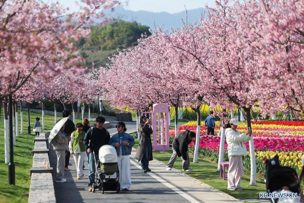 中 저장 화톈메이디 관광지, 형형색색 봄꽃 만개-Xinhua