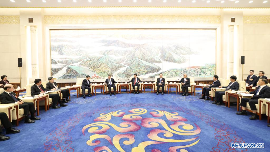 [신화망 베이징 3월12일] 중국 공산당 중앙정치국 상무위원인 왕후닝(王滬寧) 전국인민정치협상회의(정협) 주석이 11일 오전 베이징 인민대회당에서 정협 제14기 제4차 회의 홍보 보도에 참여한 언론인 대표들을 만나 정협을 대표해 진심 어린 위로와 감사의 뜻을 표했다.[촬영/신화통신 기자 황징원(黃敬文)]