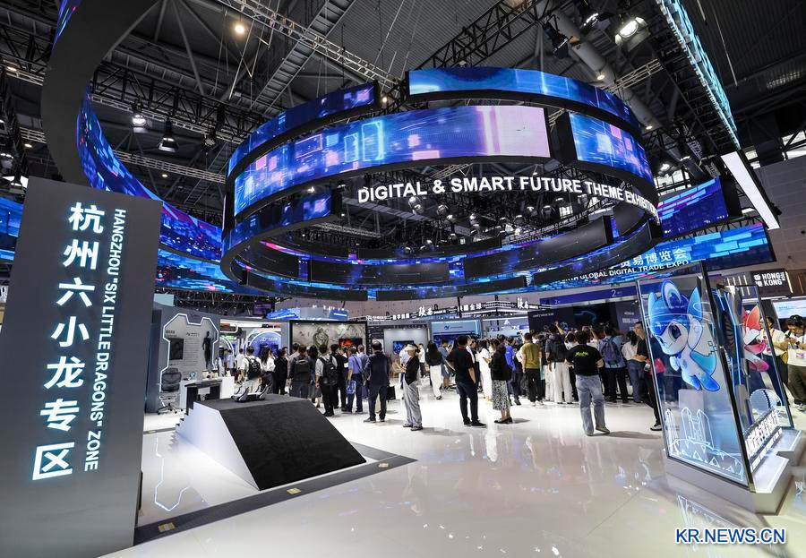 지난해 9월 25일 '제4회 글로벌 디지털 무역 박람회' 디지털 미래 테마 전시구역에 마련된 '항저우(杭州) 6소룡(小龍)' 특별구역. (사진/신화통신)