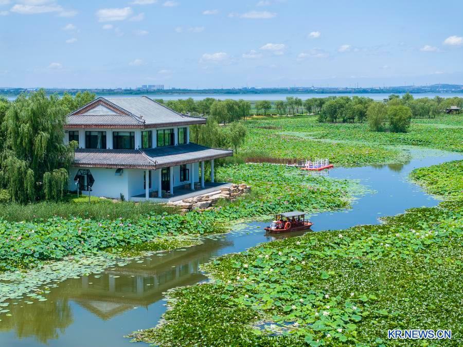 산시(山西)성 창즈(長治) 장쩌후(漳澤湖)국가도시습지공원 일각을 지난해 7월 5일 드론에 담았다. (사진/신화통신)