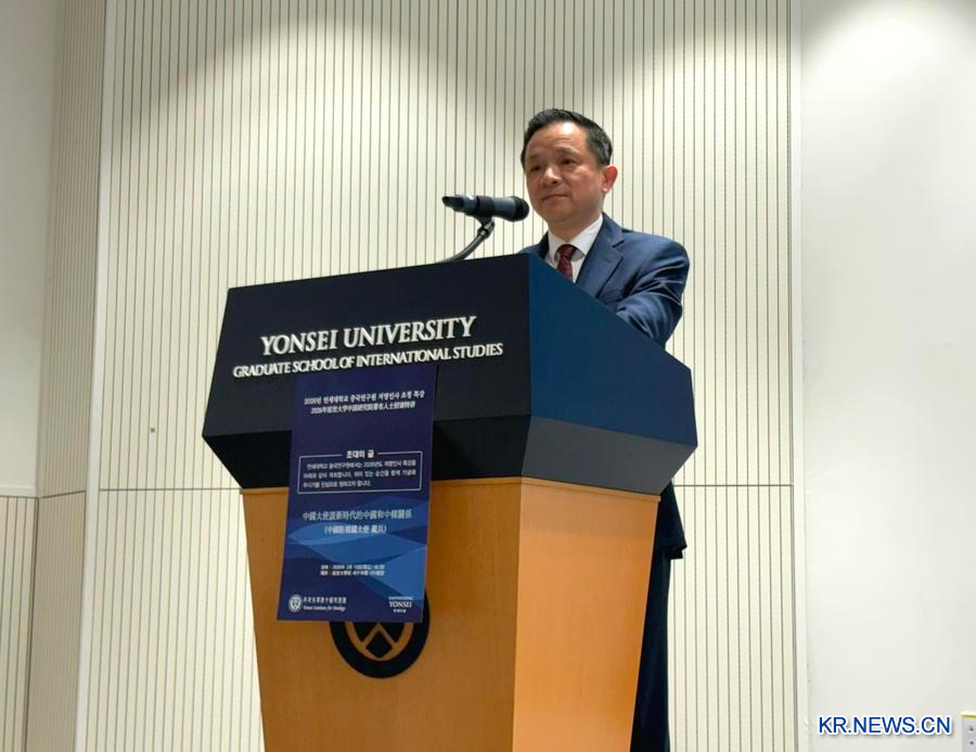 [신화망 서울 3월14일] 다이빙(戴兵) 주한중국대사가 13일 연세대학교 중국연구원 저명인사 초청 특강에서 '새 시대의 중국과 중한관계'라는 주제로 강연을 했다. 현장에는 김현철 연세대 대학원장이자 중국연구원 원장, 이정훈 국제학대학원장을 비롯해 교직원과 학생 대표 등 200여 명이 참석했다.