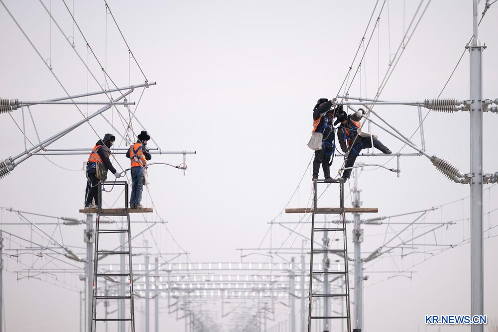 [신화망 중국 하얼빈 3월14일] 헤이룽장(黑龍江)성 하얼빈(哈爾濱)시와 이춘(伊春)시를 잇는 하이(哈伊)고속철도 4전(四電:통신·신호·전력·전력 견인 및 공급) 건설 프로젝트가 추운 날씨 속에서도 빠르게 추진돼 공정률 90%를 달성했다. 하이고속철도는 총길이 318㎞, 시속 250㎞로 설계됐으며 9개 역을 지난다.