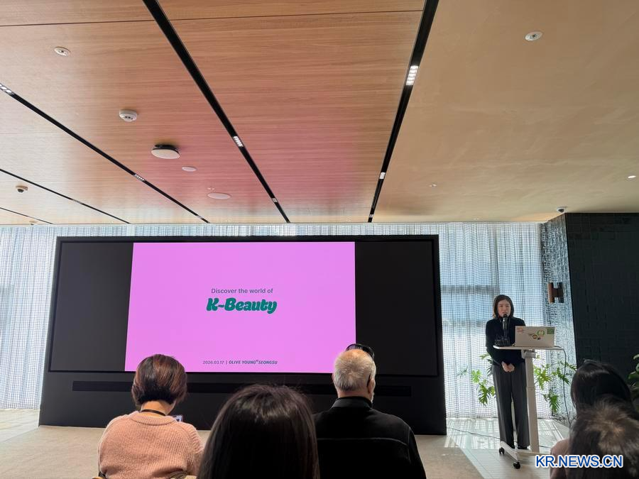 [신화망 서울 3월17일] 17일 서울 성수동에 위치한 올리브영N 성수에서 기자 초청 행사가 열렸다. 한국 뷰티 리테일 분야의 중요한 창구로 꼽히는 올리브영N 성수는 CJ 그룹 산하 뷰티 리테일 브랜드 올리브영이 제품 혁신, 소비 트렌드, 리테일 체험 분야에서 거둔 최신 성과를 집중적으로 선보이고 있다.
