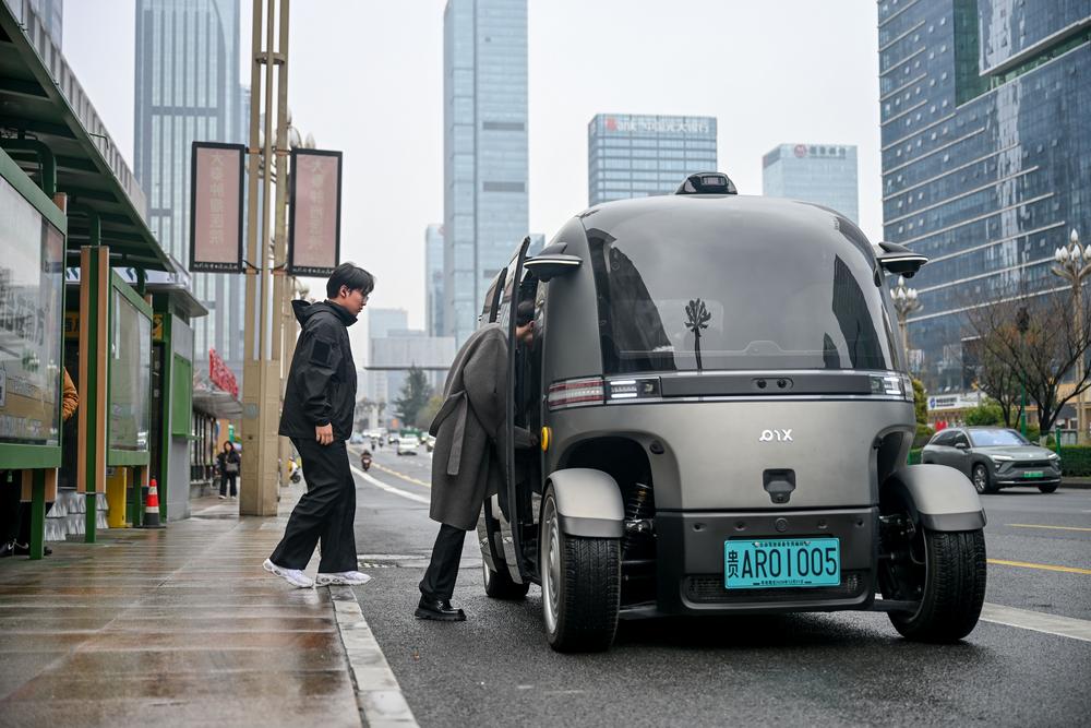16일 구이저우(貴州)성 구이양(貴陽)시 관산후(觀山湖)구에서 시민들이 자율주행 모빌리티를 체험하고 있다. 2026.3.16