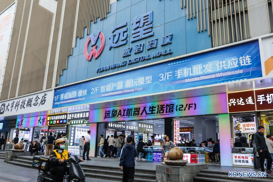 [신화망 중국 선전 3월17일] 중국 최대 전자제품 도매 시장으로 알려진 광둥(廣東)성 선전(深圳)시 화창베이(華强北)보행자거리가 '득템'하러 찾아오는 외국인 관광객으로 북적이고 있다.