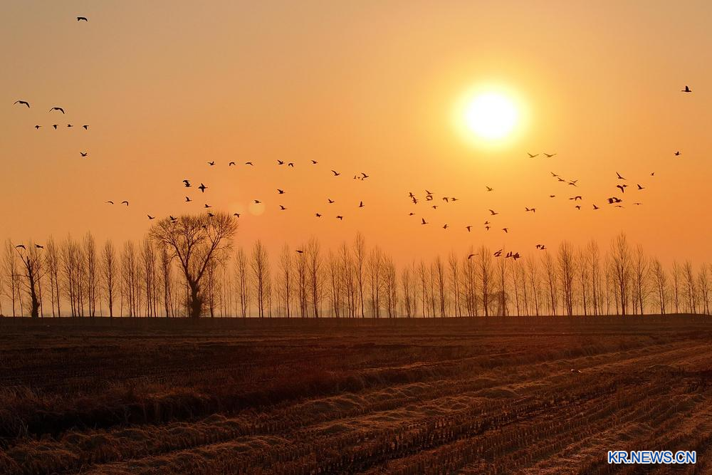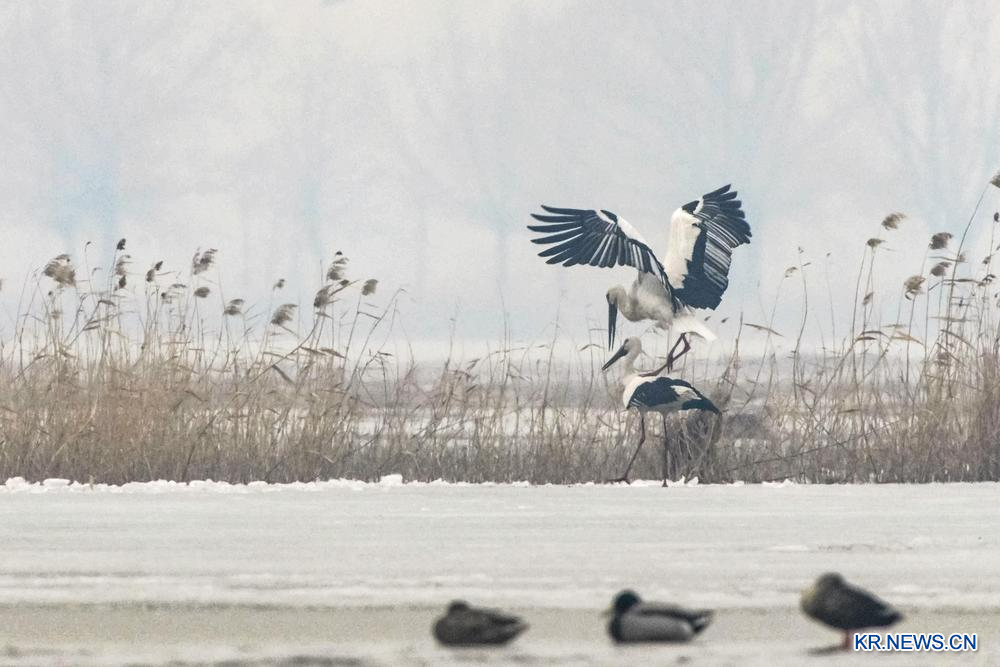 [신화망 중국 하얼빈 3월19일] 기온이 오르면서 헤이룽장(黑龍江)성에 철새가 돌아왔다. 봄기운이 완연한 습지와 수역 곳곳에서 철새들이 노니며 한 폭의 그림 같은 풍경을 자아내고 있다.