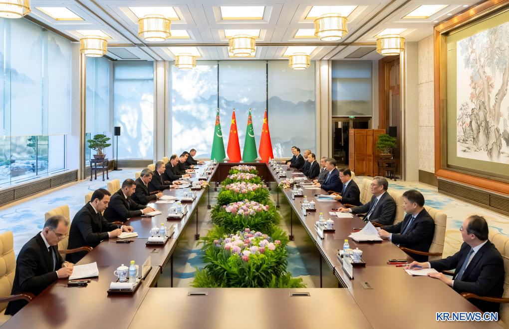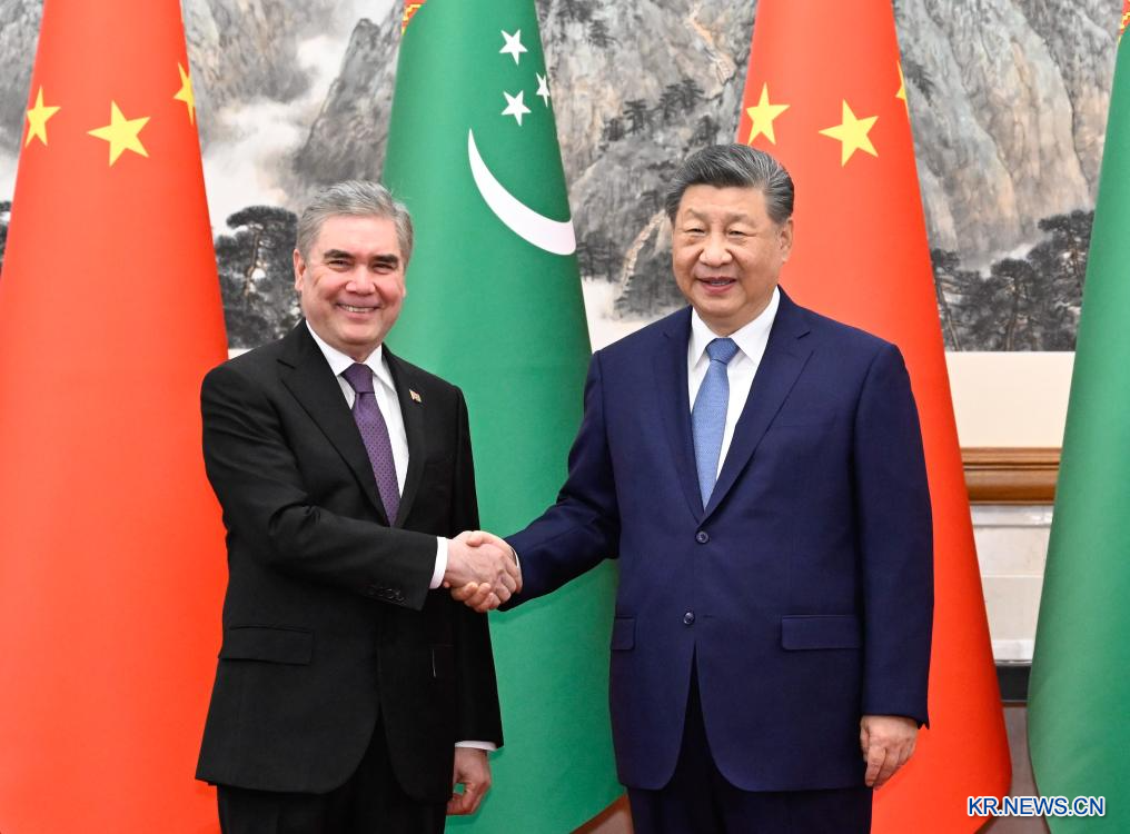 시 주석이 18일 오후 베이징 댜오위타이 국빈관에서 중국을 우호 방문한 구르반굴리 베르디무하메도프 투르크메니스탄 민족 지도자, 인민위원회 주석과 회견했다. [촬영/신화통신 기자 자이젠란(翟健嵐)]