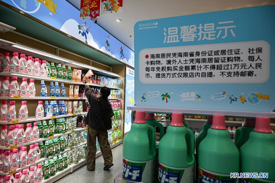 지난 12일 한 고객이 하이난(海南)성 하이커우(海口)시 왕하오(旺豪) 일용소비재 면세점에서 상품을 구매하고 있다. (사진/신화통신)
