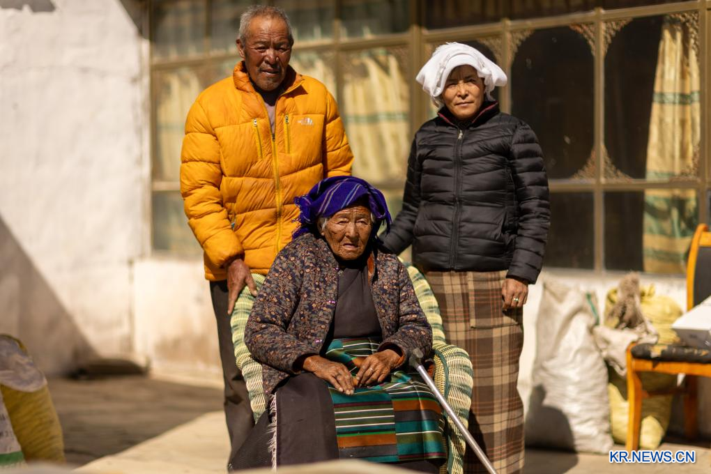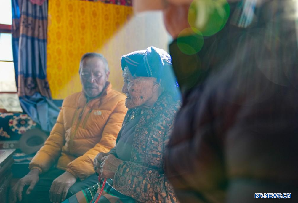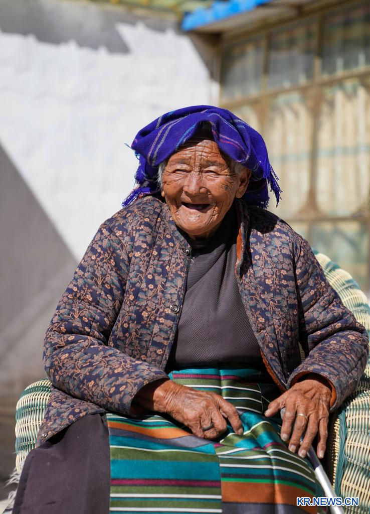 [신화망 중국 라싸 3월31일] 올해 95세인 궁줴취전(貢覺曲珍) 할머니는 시짱(西藏)자치구 라싸(拉薩)시 니무(尼木)현에 살고 있다. 고령의 할머니는 약 100년에 가까운 인생의 변화를 이야기하면서 감개무량해 했다.