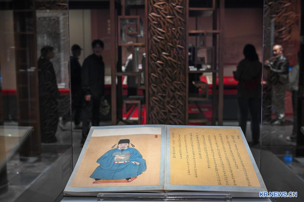 30일 베이징 궁왕푸(恭王府)박물관에 전시된 리장(麗江) 목씨환보(木氏宦譜). 2026.3.31
