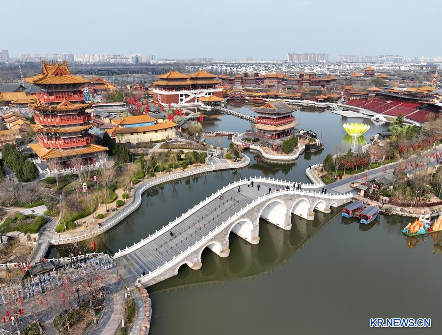 지난해 3월 6일 허난(河南)성 카이펑(開封) 칭밍상허위안(清明上河園) 관광지를 찾은 관광객을 드론에 담았다. (사진/신화통신)