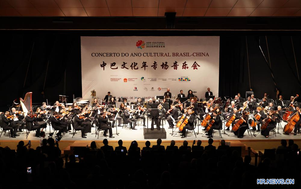 [신화망 브라질리아 4월 9일] 7일 저녁 브라질 수도 브라질리아에서 열린 '중국·브라질 문화의 해' 특별 음악회 공연에선 중국교향악단과 브라질 클라우지우 산토루 국립극장 교향악단이 한 무대에 올라 양국의 클래식 명곡을 함께 연주했다.