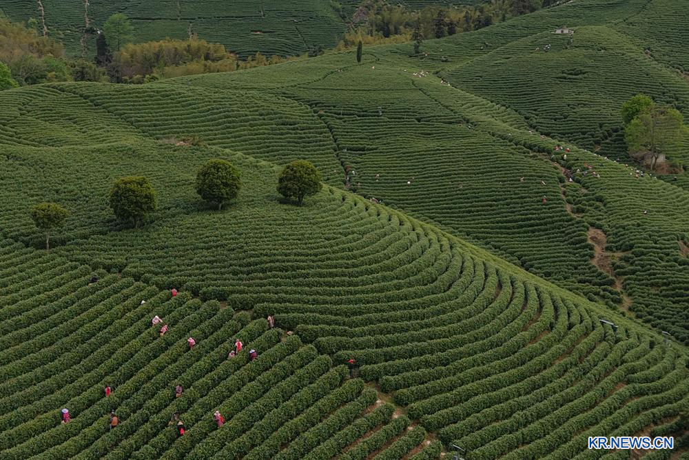 [신화망 중국 안지 4월 9일] 중국 유명 안지(安吉) 백차 산지인 저장(浙江)성 후저우(湖州)시 안지(安吉)현이 수확철을 맞이했다. 지난해 안지 백차 생산량은 약 2천630t(톤)에 달했다. 이곳 안지 백차의 재배, 관광 등 전체 산업사슬 생산액은 70억 위안(약 1조5천260억원)을 돌파했다.