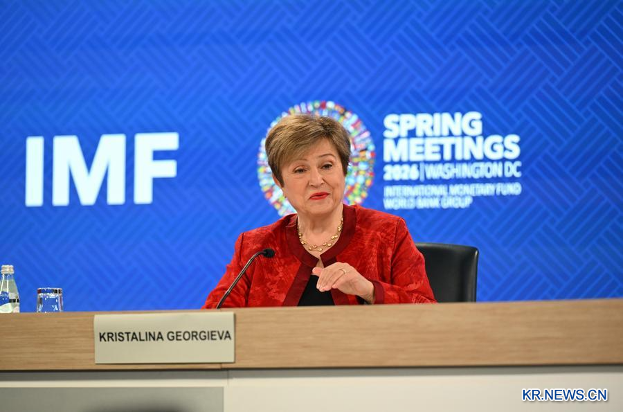 크리스탈리나 게오르기에바 국제통화기금(IMF) 총재가 지난 15일 미국 워싱턴에서 열린 IMF·세계은행(WB) 춘계회의 기자회견에서 발언하고 있다.